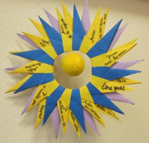 En 2017-18, un échange de soleils avec des mots d’encouragement pour souligner la bienveillance entre pairs a été proposé aux classes. Bravo pour la créativité et l’originalité!